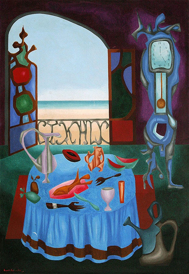 Because I... because I already took a step out the door, because I hung the rubies on the chandeliers, because I already blew him and I couldn’t possibly be wrong again, because I chased the drifters through soot-blackened tenements and kept promising their reformation into civilized society, they will hide their cankers with latex and fill their tooth-gaps with marshmallow, Althaea officinalis, the doctors took the root and made syrup, put it into a gourd and made the vizier drink up as the night-fires raged on and the shackled devils dragged the limestone benben with all the goddamn mosquitoes swaddled in their black, oily hair, we are celescalating for a million years, marshmallow, because the word already charted a course, set on with satchel, rapier and vanity mirror over her shoulder so that the ones who travel behind her are aware of the path already trod, because it is much too late now even though the lozenge has naught to do with the mallow growing in the marsh while wisps sing, but we will graft the possibility into the resolute, because I bought and sold the 12%, because I am a sophist and you are a needle shining in the dark and because you go on around the Academus needling older men for their approval and their eyes are downcast, their peplos are blown away and you can see their red-asses gleaming as they are ultimately hidden by the doric columns and you scream and invent the epideictic speech, it could use some work but the claps thunder over you, because i’m bought and sold at 12%, because they chase me around the psych-ward with fly-swats, because I tip-toed out of bed since I feel that i’m lying to you if I’m in it, because of all the dull argentum on your heels, because you keep putting all your chips in black and red is always hit, the Casino sends you coupe glasses overflowing with Perrier-Jouët Reserve Belle Epoque 1995, courtesy of the swindlers, because you keep losing everything you own but are quite thankful to your sponsors, to the guardians, to the conservatorship keeping you sedate, because you are back from the dead now, because it is high-time you swung back, yeah, no more bones whispering under your skin, because we shorted all the stocks of all the airlines, because we snorted all the lines made by the tropics, because you are trying to find yourself in these lines but are absent, because the RAE took away all my nouns, because the OED provided too much, because I spill wine on your lapel so you buy another suit, because once upon a time there was something going on and once upon a time I knew how to dream that once upon a time there was a battle fought here, because I really wish they won at Bahía de Cochinos so I could play baccarat in La Habana, because I do not smoke habanos cohiba since I’m short on power, because all the men picking the tobacco passed out and their straw-hats fell out, the field strewn by bright green and streaked by mist carried off from Pico Turquino, shaving my neck with the Burley Cutting Knife, when the day is done and the orange and magenta speckle the window-panes of the Fulgencio Batista fanclub members, when we acknowledge our transience in the fading, lambent shadows around our boots, when we catcall exhausted women along the boulevard and finally go off into a paladar (y’know they always say fiction can’t beat reality but man just lookatat Brazilian telenovela, for instance) and go batty with saoco and canchánchara, and later on when all pretense has been dropped just plain ‘ol rum, whenwhenwewhenhehehe but what if Regina Duarte saw me drool into the mahogany bar, would she then take pity upon me and take my head on the crook of her arm? leaving my body without an operator, splashing blood from the fountain of my neck, kneeled amongst my friends who are eating tostones and making yet another scheme to murder our shift-boss and not paying mind to my corpse, would I then travel crosscountry while held by Regina? and now the crook of her arm is dripping blood and she promises to take me all the way into Rio where my pate will be buried under that god-awful cathedral while we all continue to smile because it’s been 4.54 billion years of merriment.